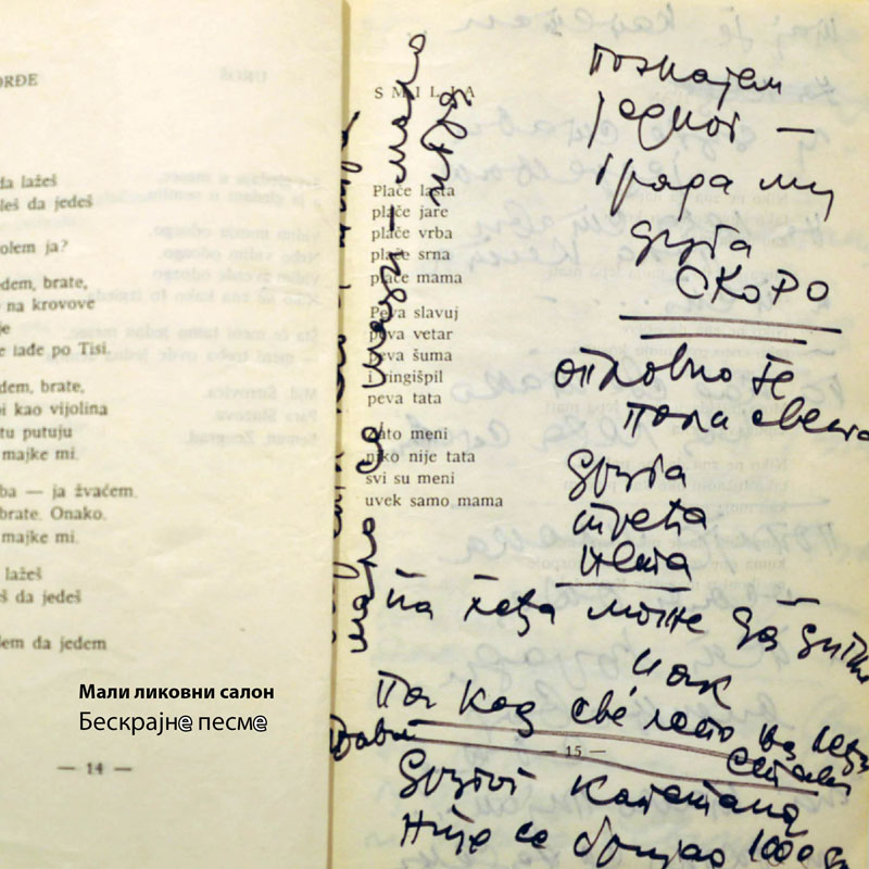 BESKRAJNE PESME (Beleške i skice novih pesama na prvim izdanjima knjiga Miroslava Antića i projekcija filma „Čovek od zvezda“ Peđe Babovića)