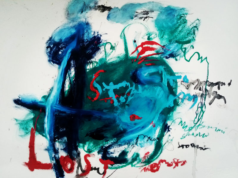 U dijaloškom konfrontiranju crteža i radova na papiru Jelene Đurić sa slikama Miroslava Antića ukazuje se na osobenost i sposobnost autentičnog dela da reprezentuje duh sveta i vremena u kome je nastalo. U ovim radovima su vidljiva dva različito koncipirana aptrakcijska stava: Antićeva apstrakcija je “mekša”, obeležena je lirsko-poetskim raspoloženjem jer je nastajala u društvu u kojem su aktivni progresistički procesi i verovanje da je bolji svet moguć. Jelena Đurić stvara u vremenu posle 2000-te. Ona pripada generaciji koja je preživela krizne devedesete, sve tranzicijske tegobe i druge drastičnosti društva u permanentnoj krizi. Ona danas umetnički svedoči konstantnoj ugroženosti čoveka, stvara u vremenu dominacije besnog kapitalizma podržanog globalnom medijalizacijom, deluje u atmosferi permanentnih političkih zaoštravanja, živi i radi u doba neemocionalnosti… Vođena istinskom stvaralačkom etikom, sada već kao sasvim zrela umetnička ličnost, Jelena Đurić svojim umetničkim i ljudskim nastoji da prevaziđe sve te okolnosti; ona svojom slikarskom reakcijom ne želi, neće, i konačno: ne može – da “potvrđuje” duh vremena u kojem živi i stvara, već izrazito energičnom slikarskom gestualnošću protestuje i buni se protiv tog i takvog sveta. Njeni crteži (ili tačnije: radovi na papiru) odlikuju se drastičnim ekspresionizmom. Iako bez direktne interpretacije i sadržaja, ova umetnost je potpuno angažovana i aktivistička – ona posmatraču nudi sugestiju o karakteru našeg sveta u kojem je čovek-pojedinac sve manje u stanju da upravlja vlastitom sudbinom nego što je primoran da se “uklapa” u uzuse iznuđene egzistencije.