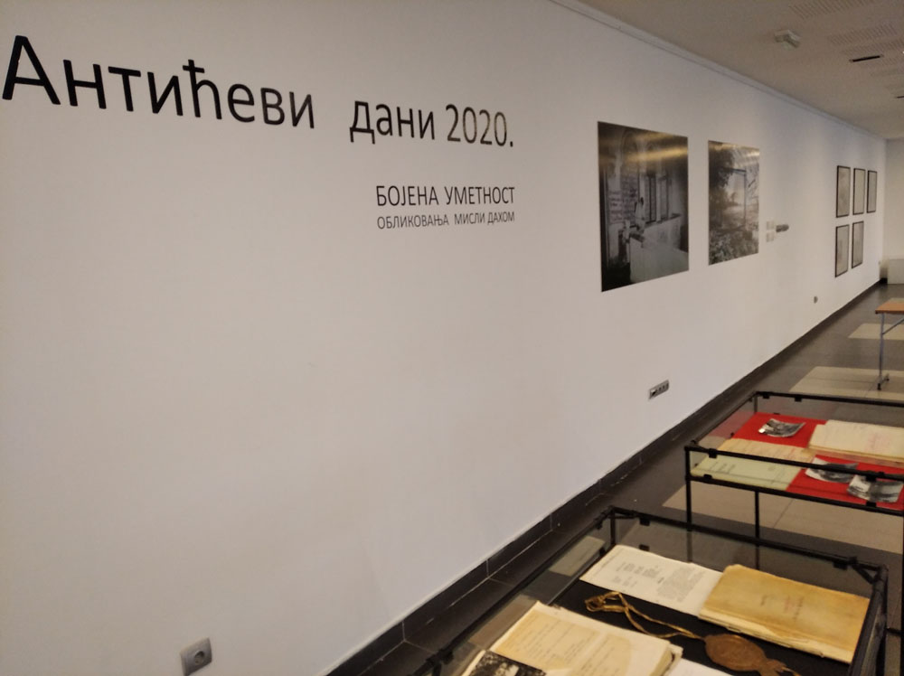 U Klubu „Tribina mladih“, na izložbi pod nazivom „Bojena umetnost oblikovanja misli dahom“, pozajmljenog stiha o poeziji iz „Mita o ptici“, nalaze se dokumenti koji beleže stvaralačke procese pre i tokom nastanka nekih od Antićevih filmova. Izložba obuhvata nekoliko sinopsisa, sa vizuelnim i pisanim skicama, uputstvima namenjenim saradnicima, snimateljima i producentima filmova koje je Antić sam već prethodno odgledao u svojoj mašti. Najveći deo izloženog materijala posvećen je filmu „Doručak sa đavolom“ za koji je 1971. godine dobio Zlatnu arenu u Puli za najbolji scenario.
