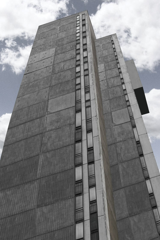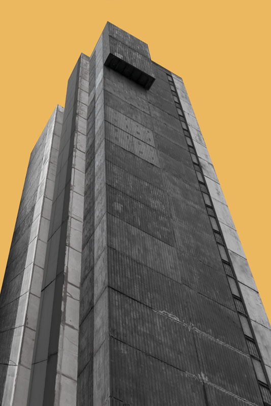 Pošla sam od fotografije zgrada, koje sam postupkom digitalne manipulacije transponovala u objekte. Njihovu veličinu i monumentalnost dočarala sam predstavljajući ih iz žablje perspektive. Na ovaj način naznačila sam i kod posmatrača pobudila osećaj divljenja, koje osećamo svaki put kad se nađemo ispred nečeg grandioznog.