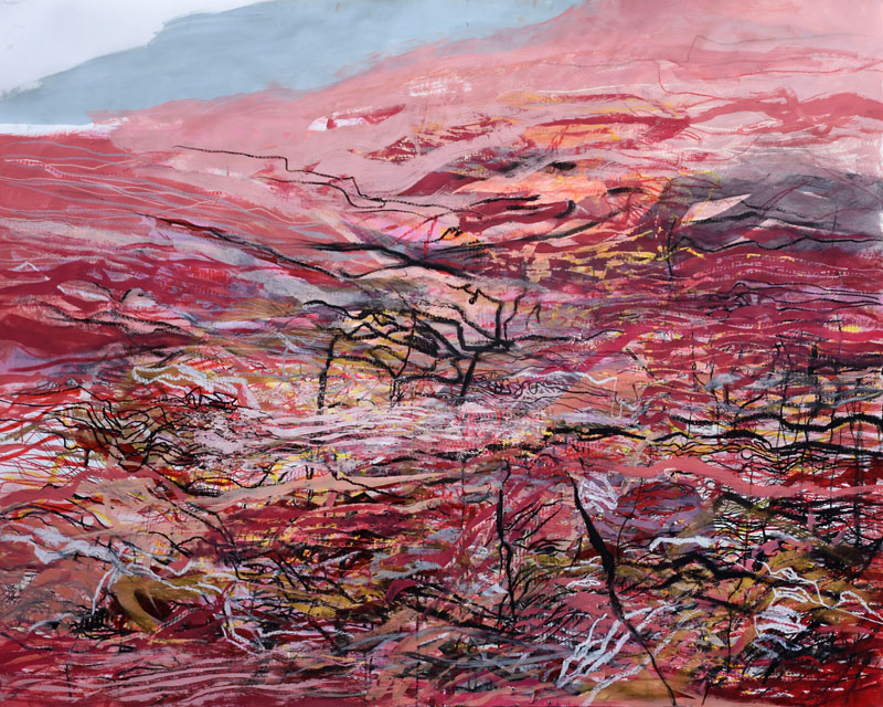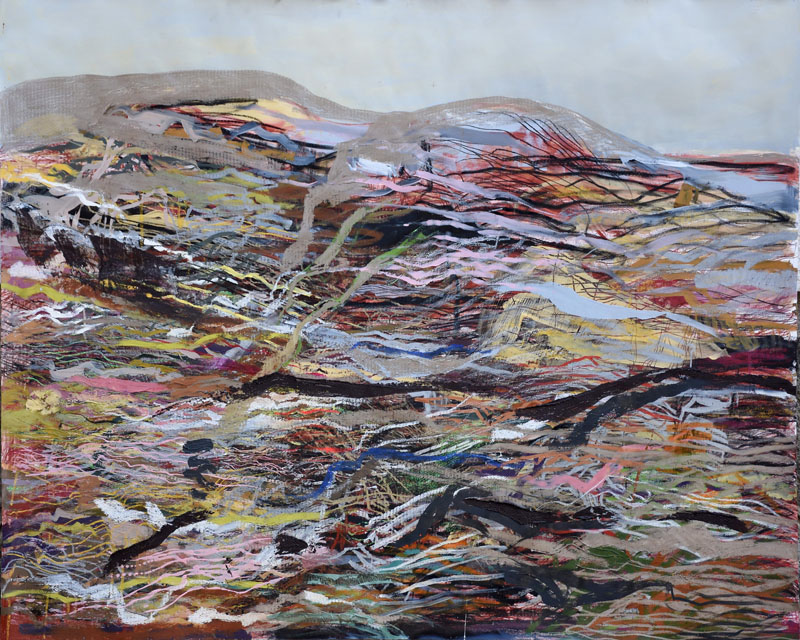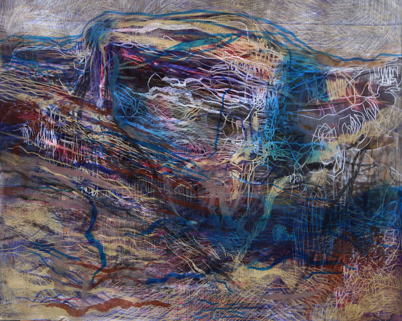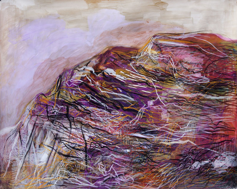 Како нешто што је оличење стамености и моћног мира може истовремено да евоцира кретање? То је једна од загонетки коју покушавам у овом циклусу да ослушкујем кроз усковитлане преплетаје линија које су главна арматура и визија овог цртежа и живе звукове боја које су природно срођене са линијом. Текстура која је последица овог укрштања делимично открива снагу и моћ камена, његовог унутарњег лика. Камен који тка стену уноси дилему у цртеж: како време ствара призор чинећи га доминантним у одређеном, реалном простору, а скрива његову снагу у слоју бића који једино уметност препознаје? Линија види, линија зна и открива токове мисли саме природе.