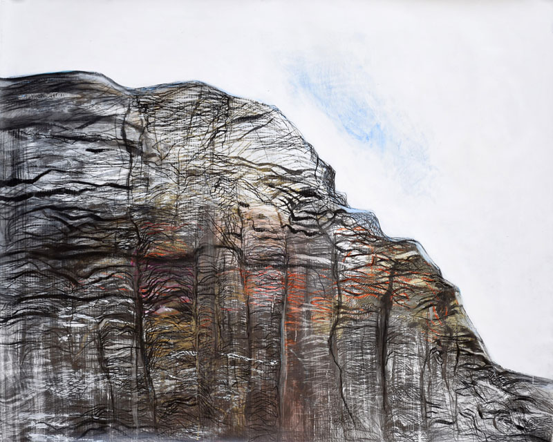 После неколико серија цртежа у којима се бавим природом и у којима је природа амбијент неког дешавања, мој поглед је застао на једној стени која својом раскошном текстуром и убедљивом доминацијом у простору, изазива да као таква буде „проверена“, „потвђена“ или „оспорена“ у реалном простору слике и цртежа ликовним језиком који је заснован пре свега на говору линије и боје. Стена као природна формација увек поседује одређену пиктуралну лепоту али и неки „урођени“ графизам који је спонтано уводе у свет ликовне анализе. Изникла из земље, пробуђена као крик тектонских кретања и магми, стена постаје сабирање линеарних токова камена и ваздуха који је опхрва, неба и земље. Спој који је задат још у искону и који траје. Управо тај анагогијски карактер призора био је изазов да цртежом истражим део антрополошких конструката у односу човек – природа. Каква је данас та релација? Колико је човек у стању да види лепоту која дефинише његов свет као посебан и јединствен? Да ли енергија камена у лику стене – планине којом се иста надноси над земљом може да узнесе ка сфери божанског и које су моћи цртежа у том подухвату?