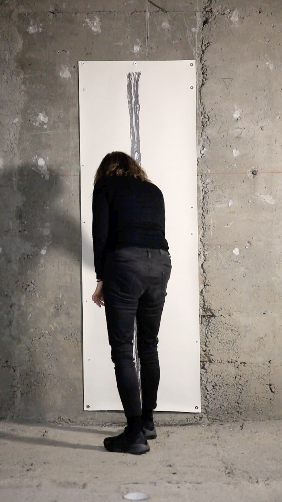 U okviru izložbe u Malom salonu KCNS, proces crtanja odvija se performativno i ritualno. Kroz petnaestominutnu akciju koncentrisanog povlačenja vertikalnih linija, zajedno sa učesnicima različitih generacija, profesija, pola i fizičke konstitucije, autori otkrivaju drevni element ljudske svesti koji je tokom istorije materijalizovan u kulturu i civilizaciju.